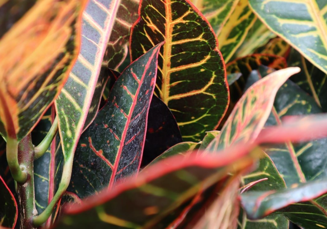 Croton, also called “garden croton,” are native to the tropical forests of southeast Asia and Oceania. In the wild, they grow as large shrubs, reaching up to 10 feet tall (in the home or garden, they stay a lot smaller).